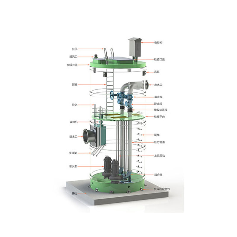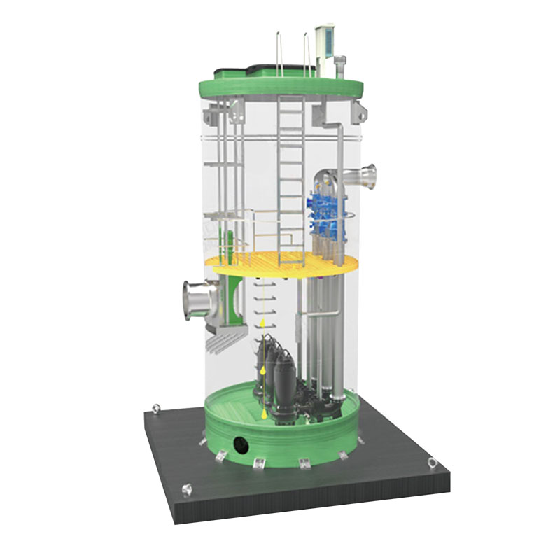 預制泵站作為一體化設備,成套提供:泵站筒體、壓力管道、檢修平臺、檢修爬梯、格柵裝置、耦合系統(tǒng)、通風裝置、防滑井蓋等。
